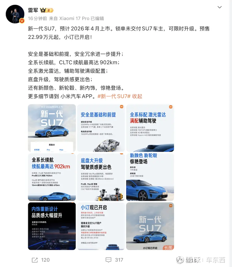 作者 | 郭月编辑 | 志豪22.99万起!新一代小米SU7正式-20260108183429