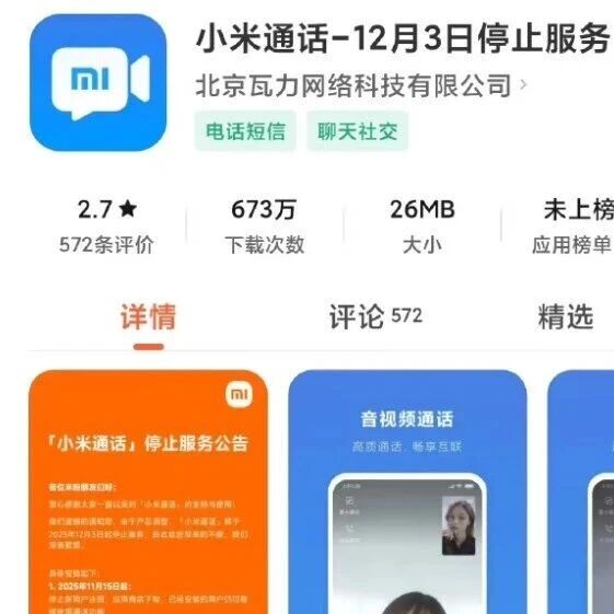小米通话将于12月3日停止服务 海峡导报 · 3 小时前 |