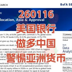 260116 美国银行 资金流向秀:牛熊指标爆表,做多中国,警惕亚洲货币 草莓研报 · 3 周前 |