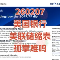 260207 美国银行 美联储缩表孤掌难鸣 草莓研报 · 4 天前 |