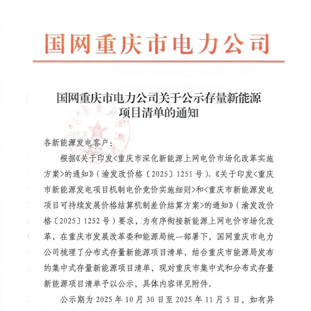 重庆公布7.45GW存量风、光项目:电价0.3964元/kWh,100%纳入机制 风芒能源 · 3 天前 |