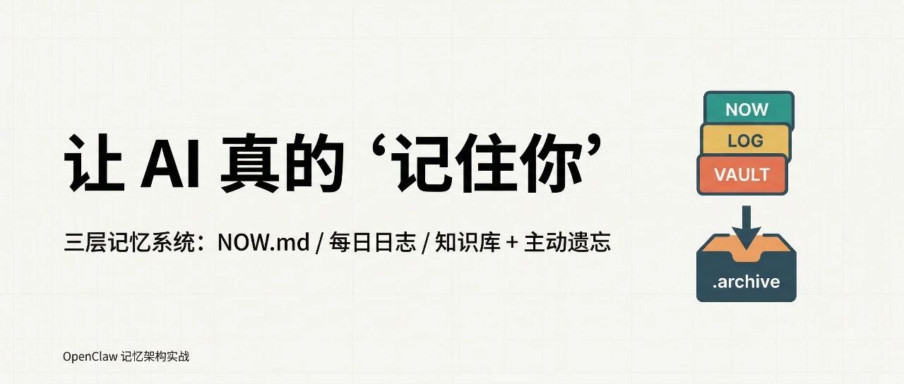 AI 真的“记住你”:一套零成本的三层记忆系统(OpenClaw 实战复盘) AI增效手册 · 3 天前 |