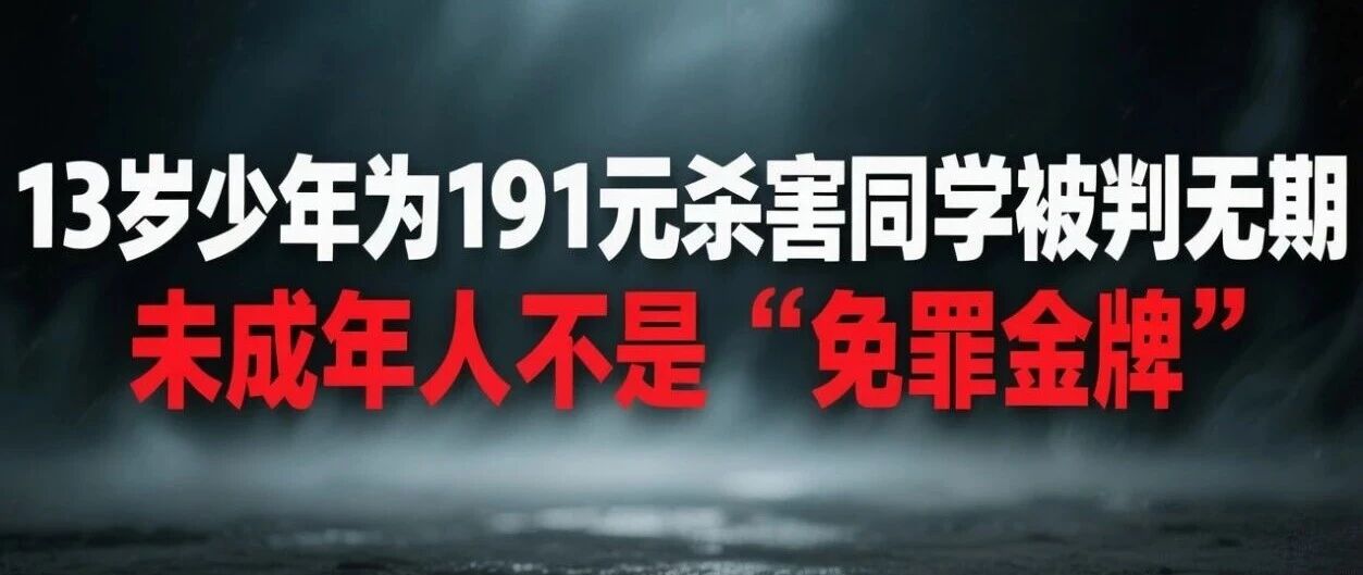 13岁少年为191元杀害同学被判无期:未成年人不是“免罪金牌” 向阳光明草 · 5 天前 |