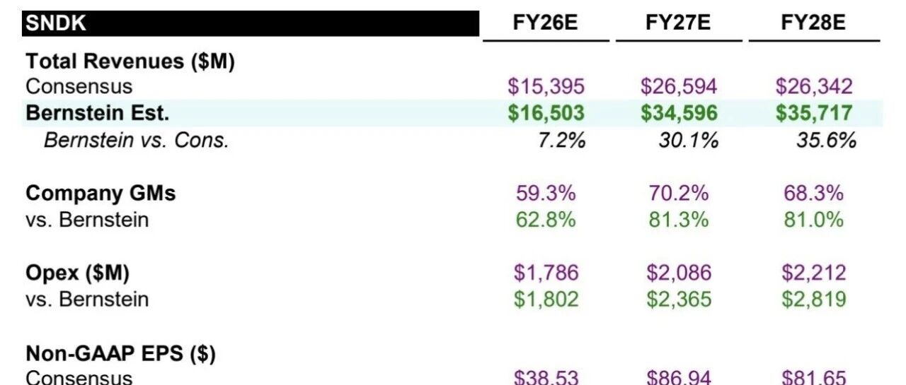 Bernstein上调闪迪目标价:乐观情形3000… 2030FY · 3 天前 |